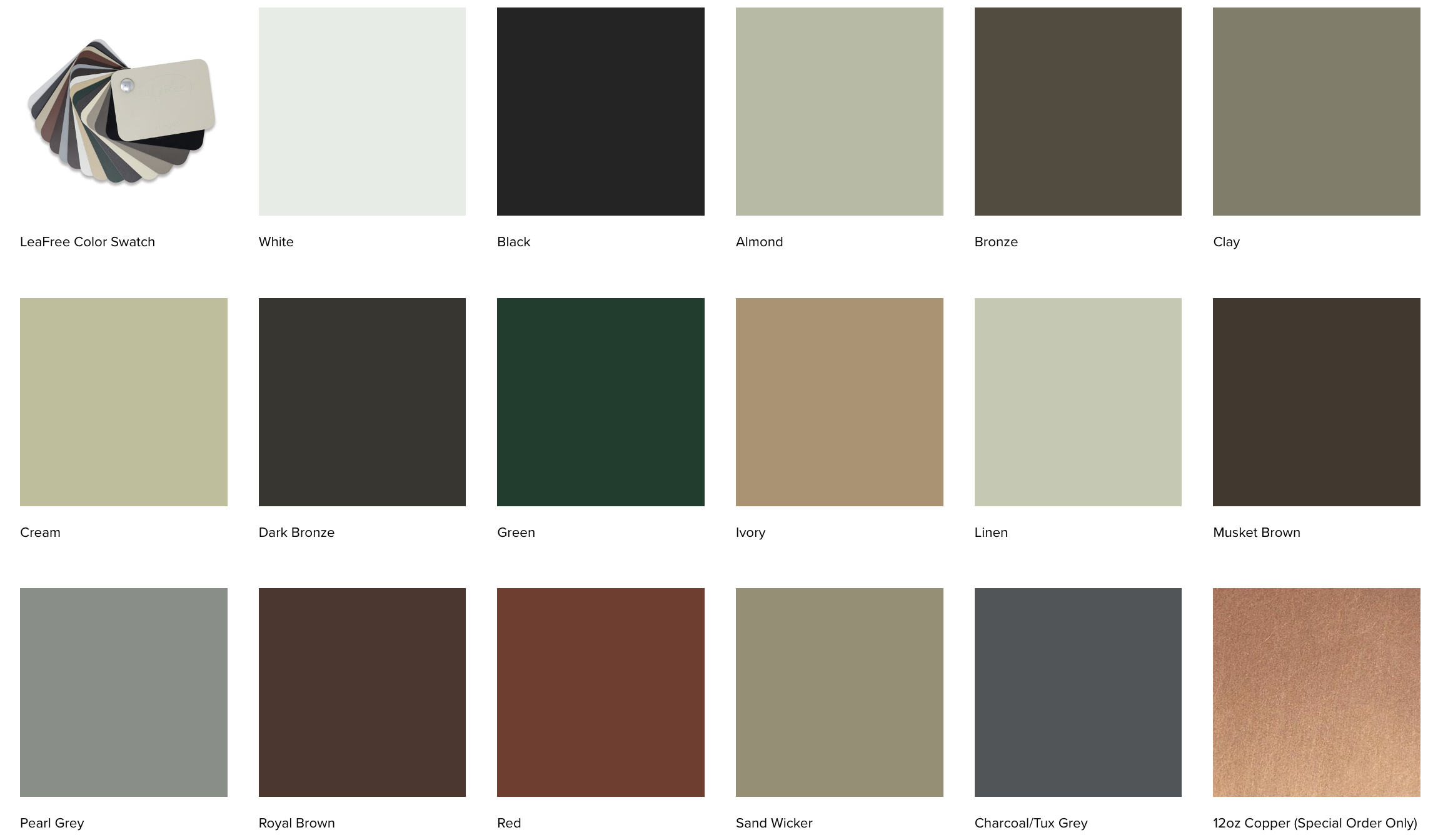LEAFREE GUTTER PROTECTION IS AVAILABLE IN 16 COLORS PLUS COPPER*